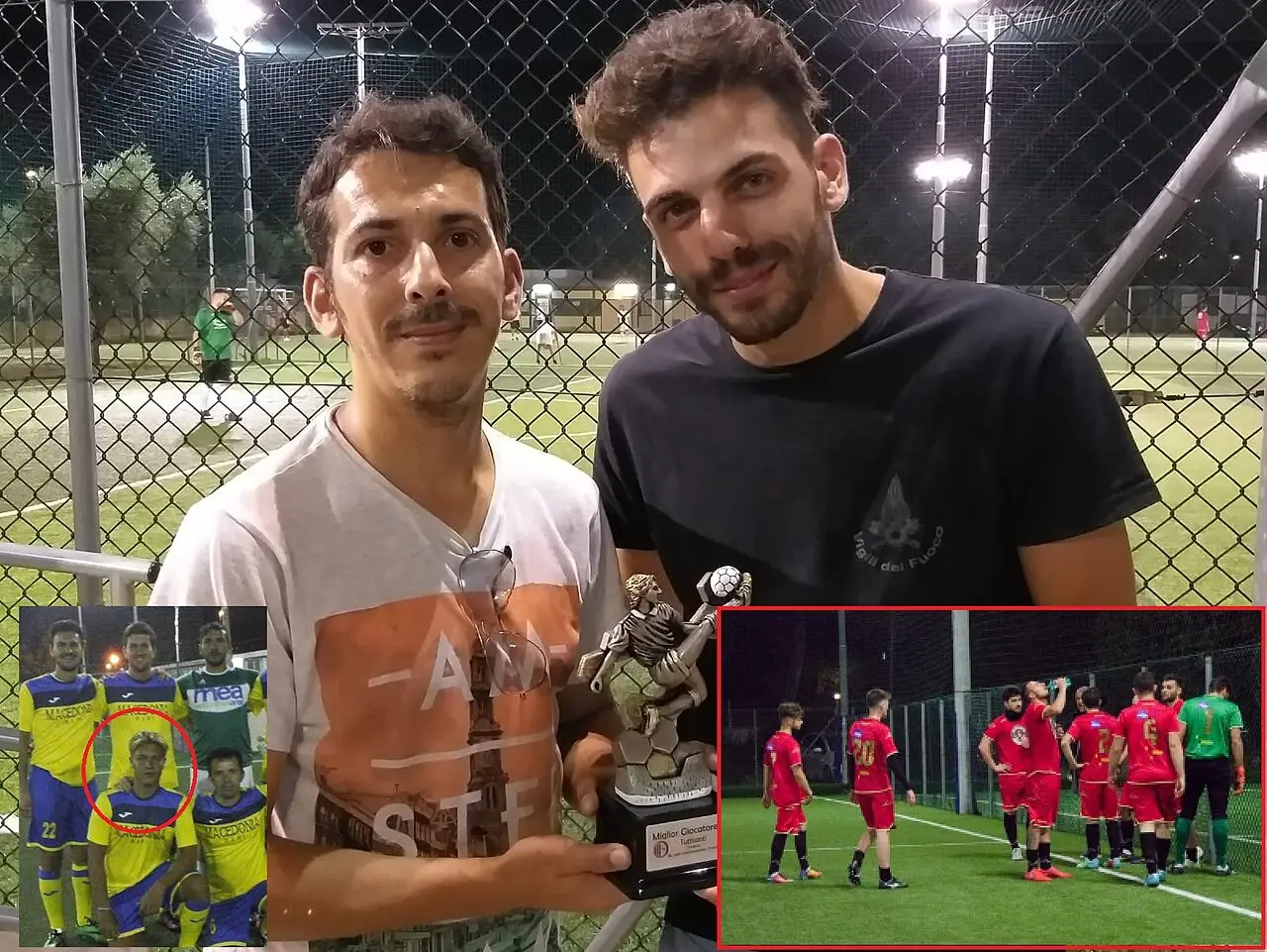 C’è stato anche l’abbraccio tra il numero uno biancorosso e Simone Bonsante, oggi difensore del Barium. Bonsante fu, all’epoca, il più giovane calciatore – dopo Tataranni – ad aver esordito nei tornei Black Jack. Aveva 15 anni e vestiva la maglia del Macedonia.