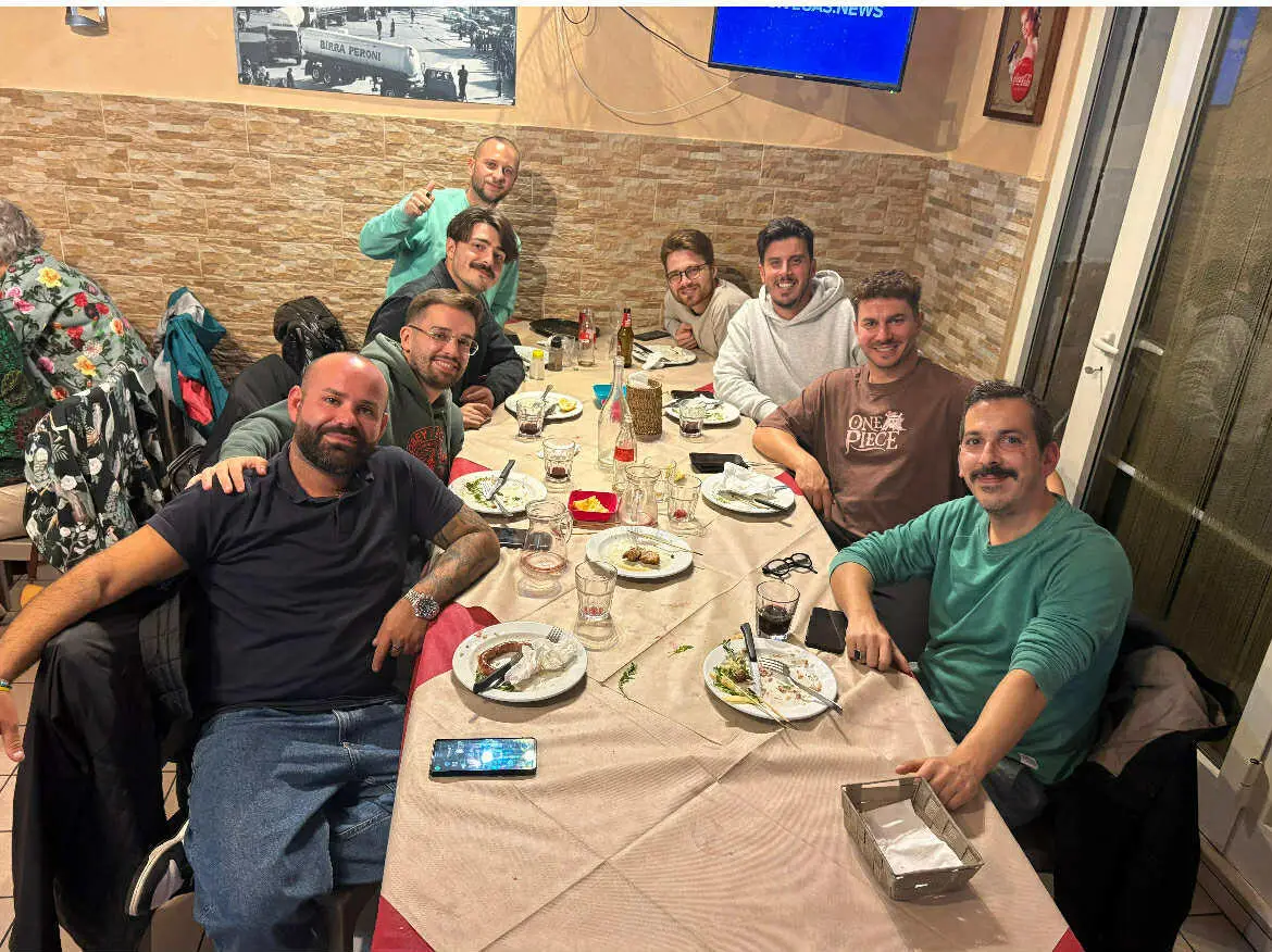 Tra un capo di salsiccia crudo e una tagliata fumante, non sono mancati aneddoti e ricordi che hanno fatto la storia recente della squadra. Momento speciale della serata, l'incontro con un tifoso che, avvicinatosi al tavolo per una foto ricordo, ha riportato alla mente un episodio indelebile: il gol di Michele Di Munno nei quarti di finale, quello che spalancò le porte della semifinale al Black Jack. Un sinistro preciso, che ancora oggi qualcuno paragona al celebre tiro a giro di Fabio Grosso nel 2006. E stasera si torna in campo contro il South Park alle 20.